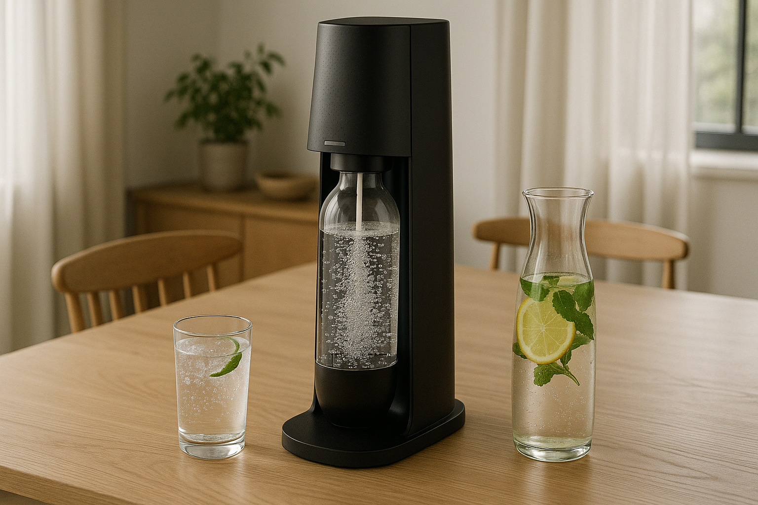 drinkmate Series 660充電式・電動/6段階炭酸/ガス残量表示/ワンタッチ装着。一度のセットで安定して同じ強度を再現でき、水はもちろん他飲料への直接注入も得意。炭酸力と操作性を両立しつつ、手入れはシンプル。電動の制御で体感の静かさも良好で、総合力トップの“最強バランス”です。